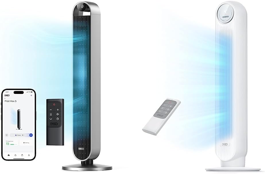 Dreo Tower Fan 42 Inch Pilot Max, 2023 Upgraded Smart Fans for home Works with Alexa/Google/App, 120° & Nomad One Tower Fan with Remote, 24ft/s Velocity Quiet Cooling Fan, 90° Oscillating 4 Speeds