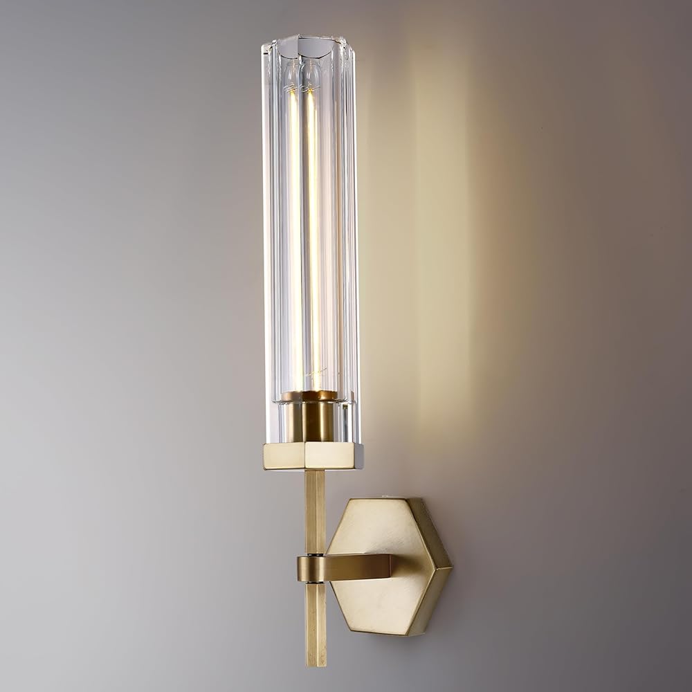 18.5" Modern Crystal Wall Sconce, Gold Bathroom Sconces Wall Lighting with Hexagonal Thicken Crystal Shade, Elegant Brass Wall Lights Wall Lamps for Living Room Bedroom