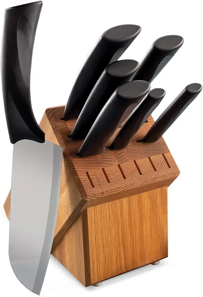 Cutlery Anthem Series Oak Block 7 Pc Stainless Steel Kitchen Knife Set with Black Resin Handles, Set of 8
