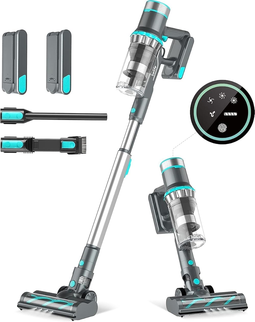 Belife Cordless Vacuum Cleaner, 2 Battery Stick Vacuum with Max 80mins Runtime,