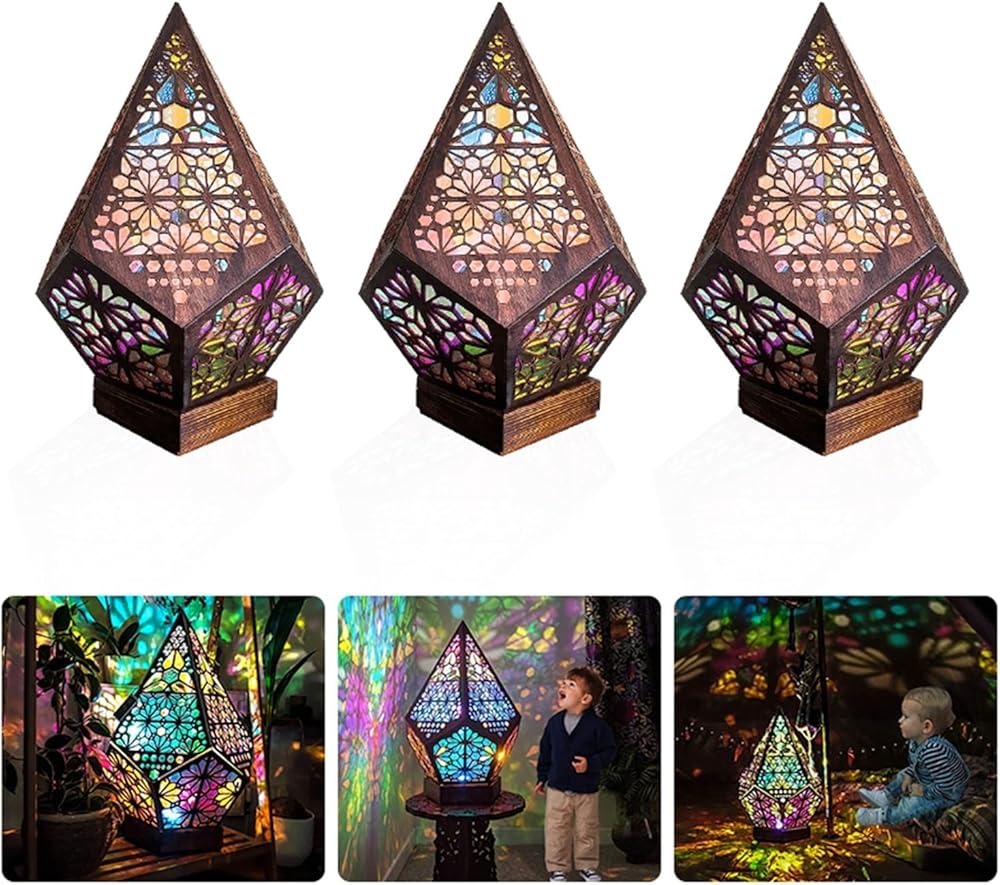 Table lamp Wooden Hollow Projection Night Lamp Bohemian Colorful Projector Desk Lamp Home Decor Holiday Lights Table lamp (Color : with USB, Lampshade Color : A)