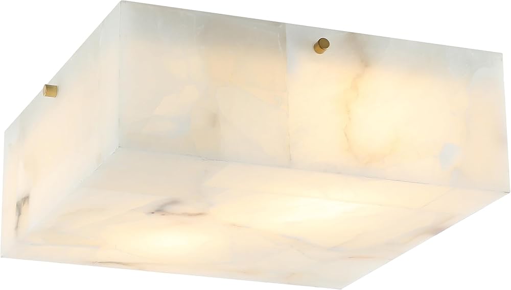 JONATHAN Y JYL1201A Giulia 13" 2-Light Modern Contemporary Alabaster/Iron Square LED Flush Mount, White Marbling/Brass Gold for Hallway, Bedroom, Bathroom and Closet