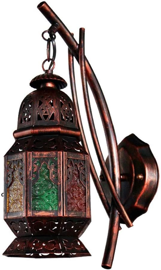 Wall Sconce Turkish Colorful Glass Indoor Wall Lamp Bohemian Decorative Wall Lantern Light E27 Socket Metal Fixture Arabian Eastern Rusty Fixture