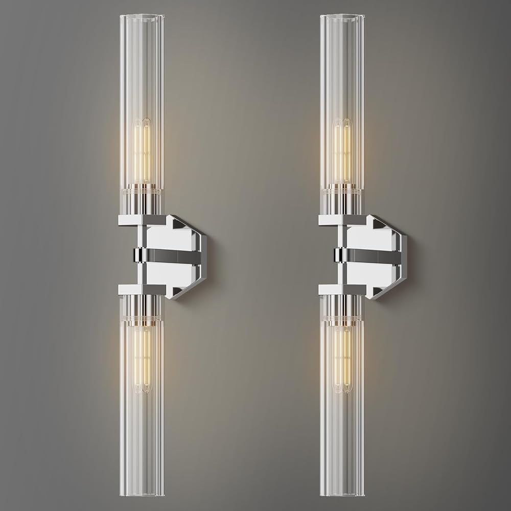 Crystal Wall Sconces Set of Two, 28.7" Dual-Lights Nickel Sconces Wall Lighting Modern Hexagonal Bathroom Vanity Light Fixtures Indoor Wall Lights for Living Room Bedroom Wall Lamps