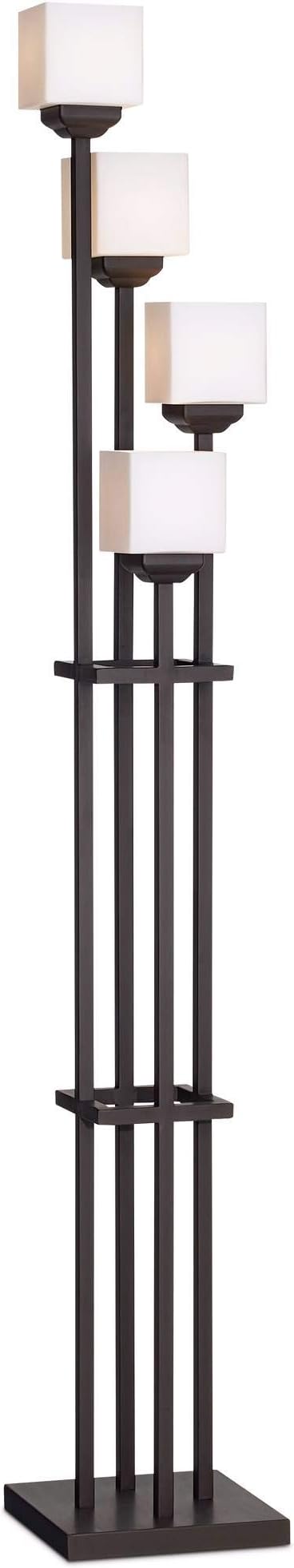 Franklin Iron Works Light Tree Rustic Farmhouse Torchiere Floor Lamp Standing 72 1/2" Tall Bronze Iron 4-Light Square-Sided White Glass Shades Living Room Reading Bedroom Office House Home Decor