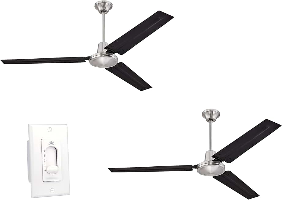 Ciata 2 Pack Garage Ceiling Fan, Shop Ceiling Fan, Commercial Ceiling Fan, Industrial 56 Inch Three Blade Indoor Ceiling Fan, with Black Steel Blades in Brushed Nickel Finish