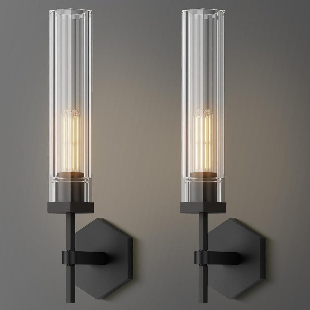 Crystal Wall Sconces Set of Two, 18.5" Black Sconces Wall Lighting Modern Hexagonal Vanity Lights Bathroom Vanity Light Fixtures Indoor Wall Lights for Living Room Bedroom Wall Lamps