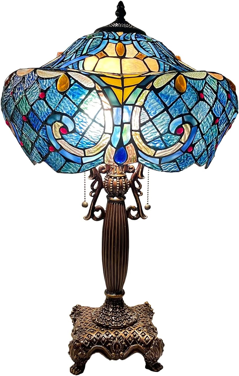 Bieye L10784 Baroque Tiffany Style Stained Glass Table Lamp with 16-inch Wide Lampshade for Living Room Bedroom Home Decoration, 24-inch Tall (Blue)