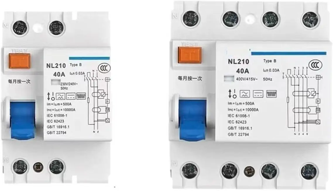 NL210 Type B RCCB 3P+N 4P 2P 1P+N 63A 40A 25A 30MA Electric Leakage Breaker Residual Current Protection for EV Charging 1Pcs(1P 1N,63A)
