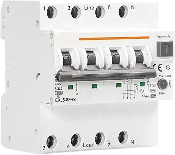 BAWHO Type B RCBO Residual Automatic Circuit Breaker 10KA 3P+N 4P 40a 63a Over Current Leakage Protection 30mA EKL5 1Pcs(Size:4P,Color:32A)