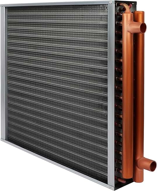 24x24 Heat Exchanger Water To Air , Forced Air Heating with 1" Copper Ports Hot Water Coil for Outdoor Wood Furnaces, Residential Heating