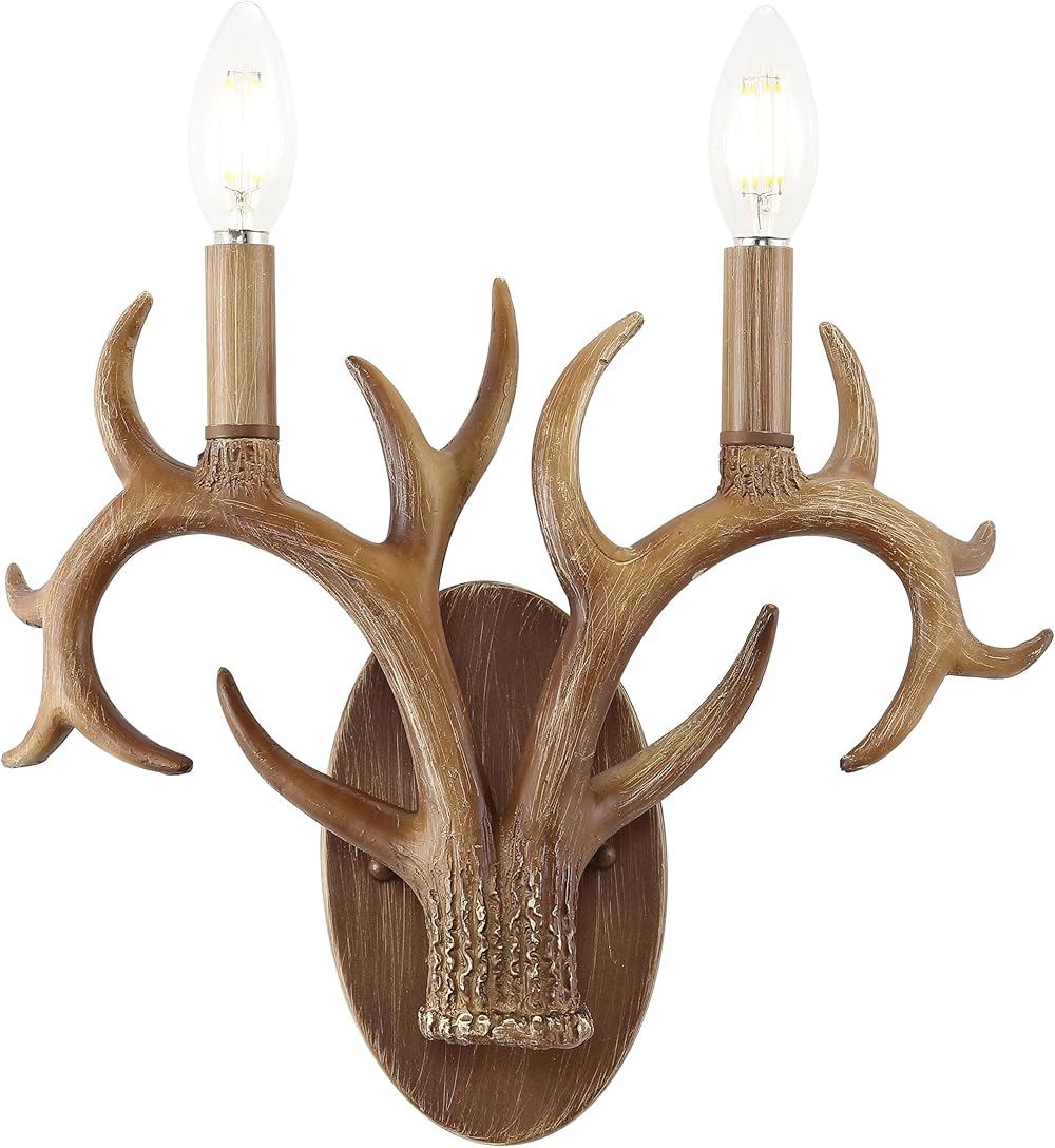 JONATHAN Y JYL6308A Oakley 13.25" 2-Light Southwestern Bohemian Resin/Iron Faux Antler LED Sconce, Brown Wood Finish for Entry, Dining Room, Hallway, and Bathroom