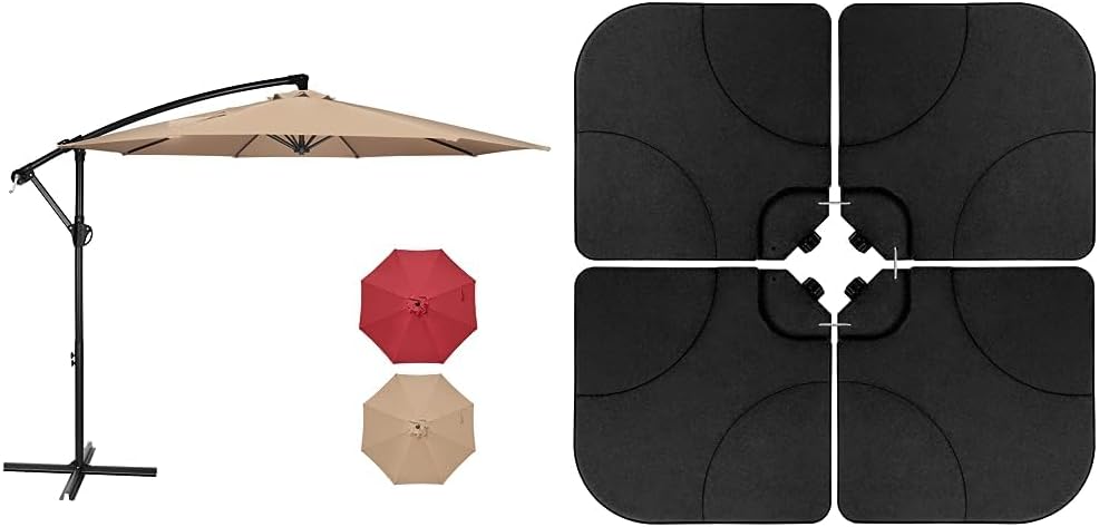 Simple Deluxe 10ft Offset Umbrella Cantilever Patio Hanging Umbrella Outdoor Market Umbrella with Crank & Cross Base Suitable for Garden, Lawn, backyard and Deck