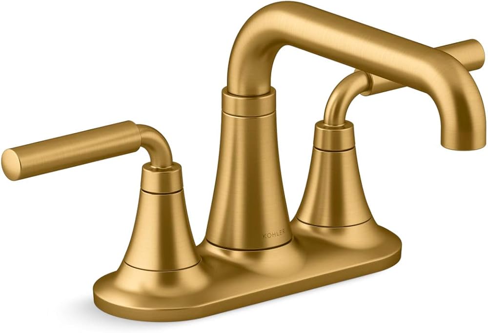 Kohler 27414-4-2MB Tone Bathroom Sink Faucet, Centerset Bathroom Faucet with Clicker Drain, 1.2 GPM, Vibrant Brushed Moderne Brass