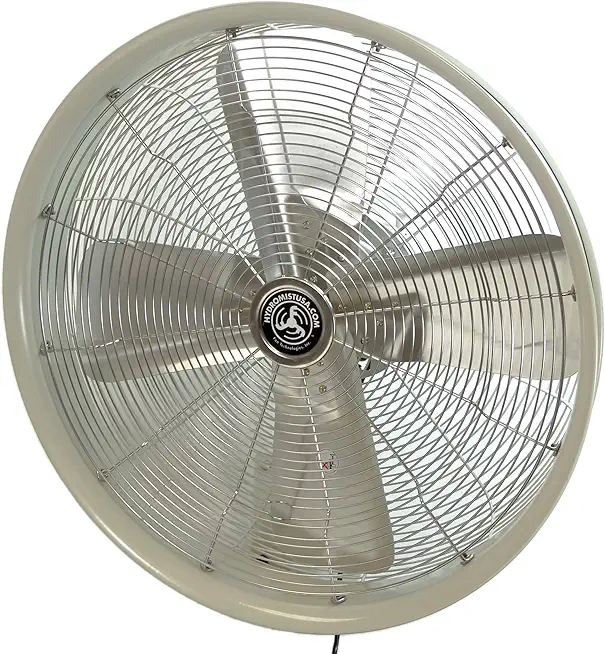 HydroMist Oscillating Wall Mounted Outdoor-Rated Fan, F10-14-017 3-Speed Control on Cord, Alum Fan Blade, Mounting Bracket and Black Vinyl Cover Included, Indoor/Outdoor Use, 24”, Off-White