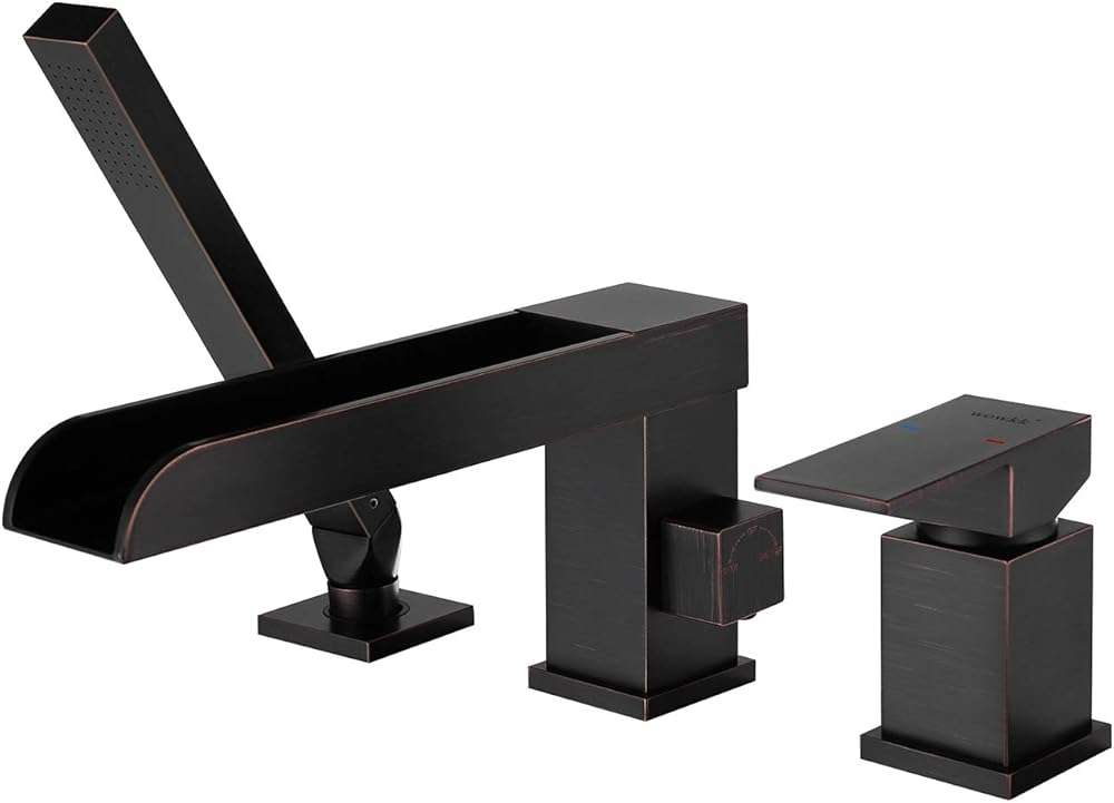 Waterfall Roman Tub Faucets Deck Mount Oil Rubbed Bronze Bathtub Faucets Brass Tub Filler Bathroom Faucets with Hand Shower