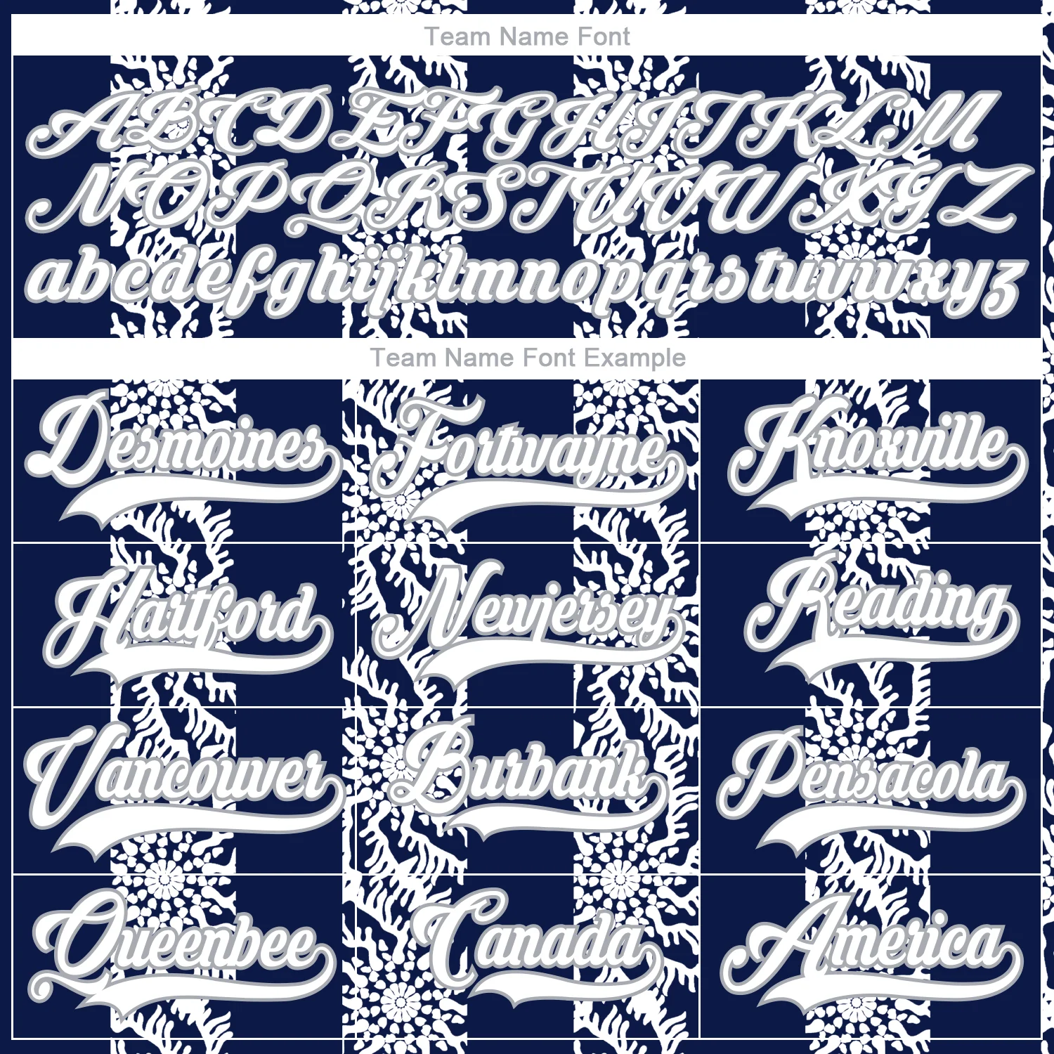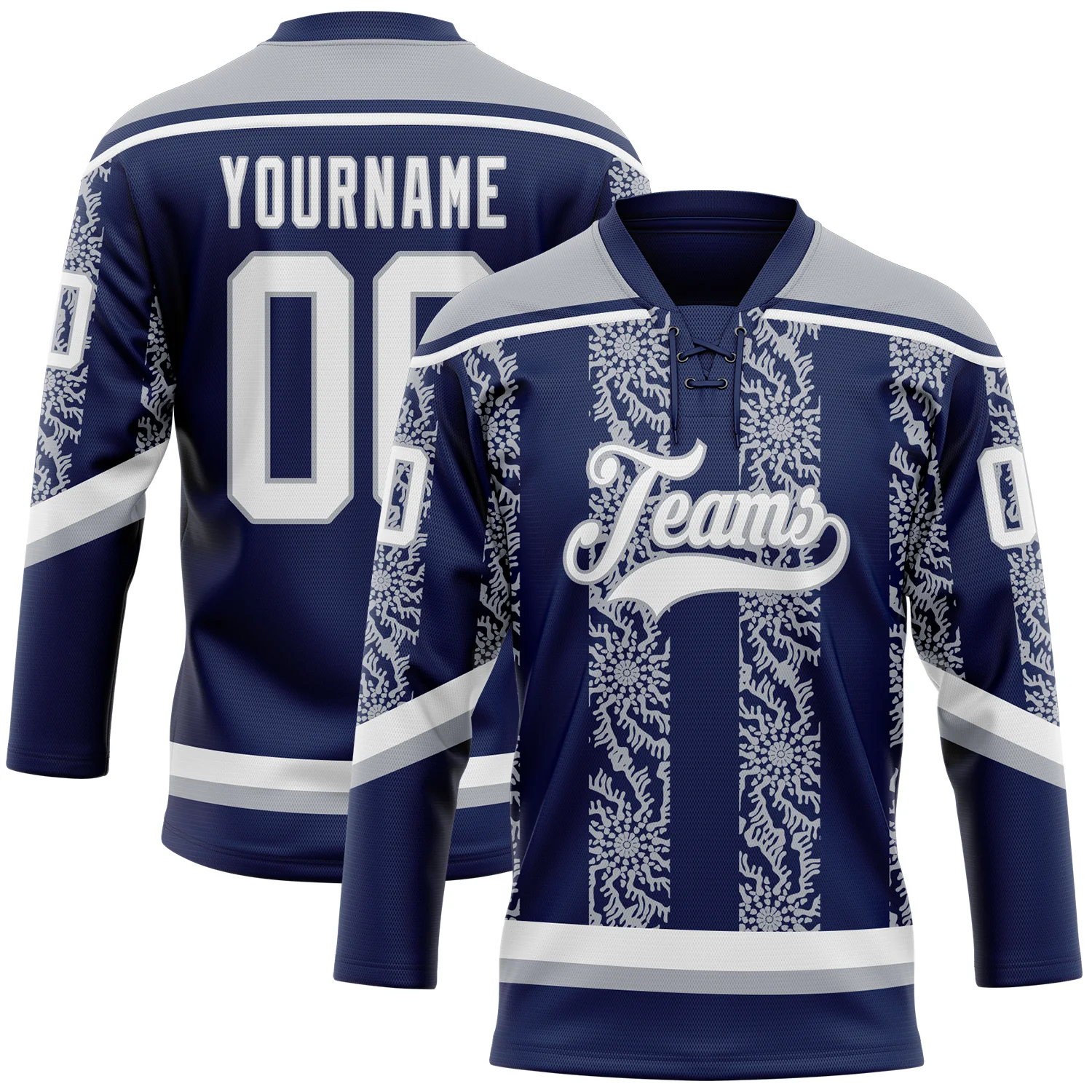 Custom Navy White-Gray 3D Pattern Abstract Shape Hockey Lace Neck Jersey