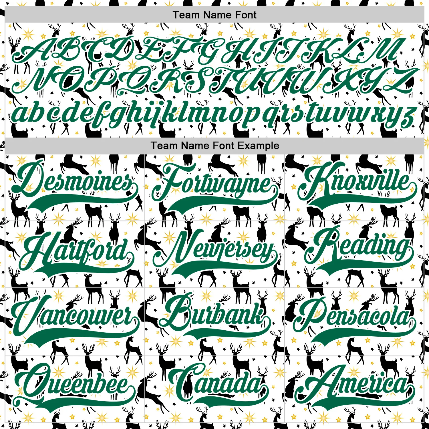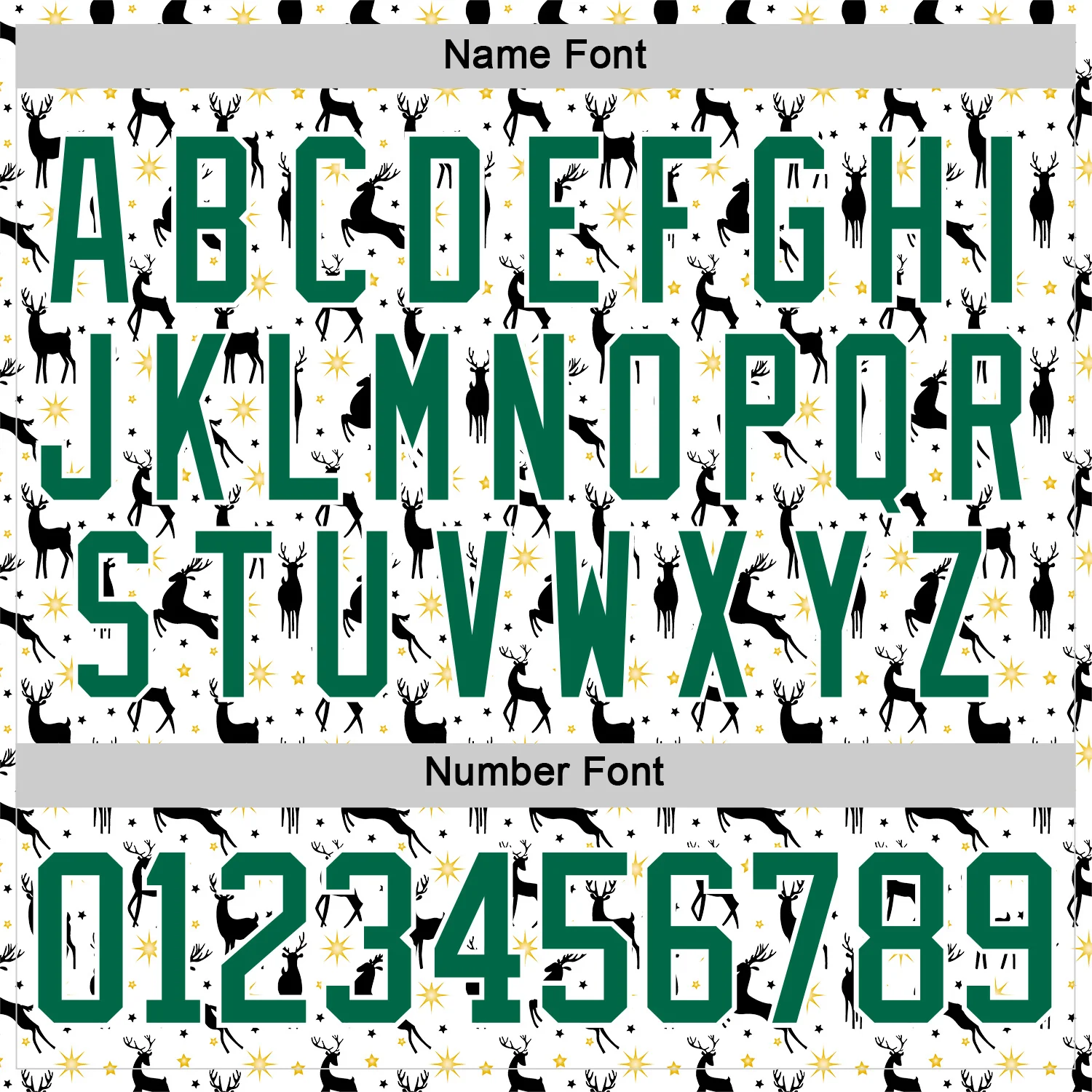 Custom White Kelly Green-White 3D Christmas Hockey Lace Neck Jersey