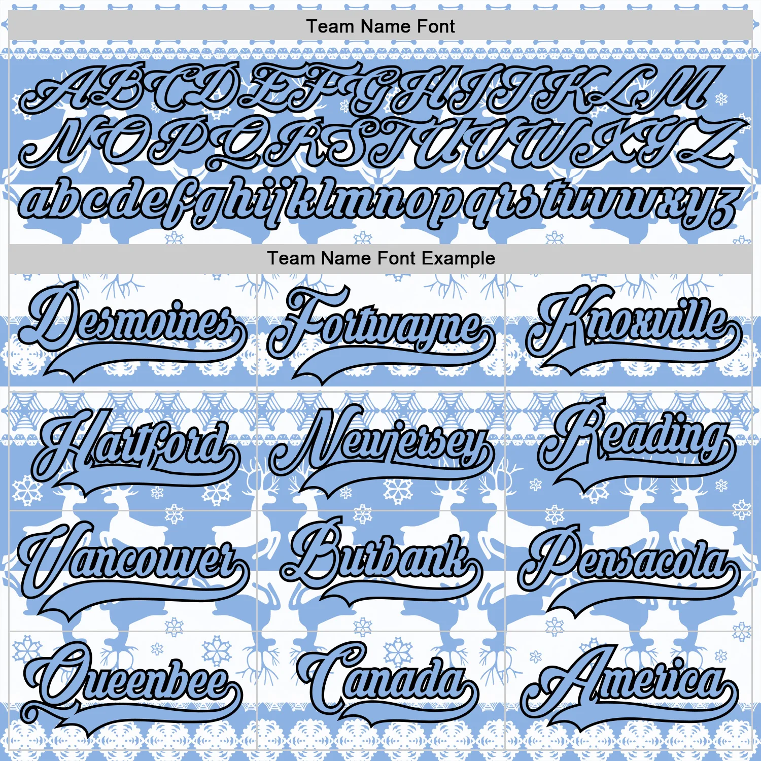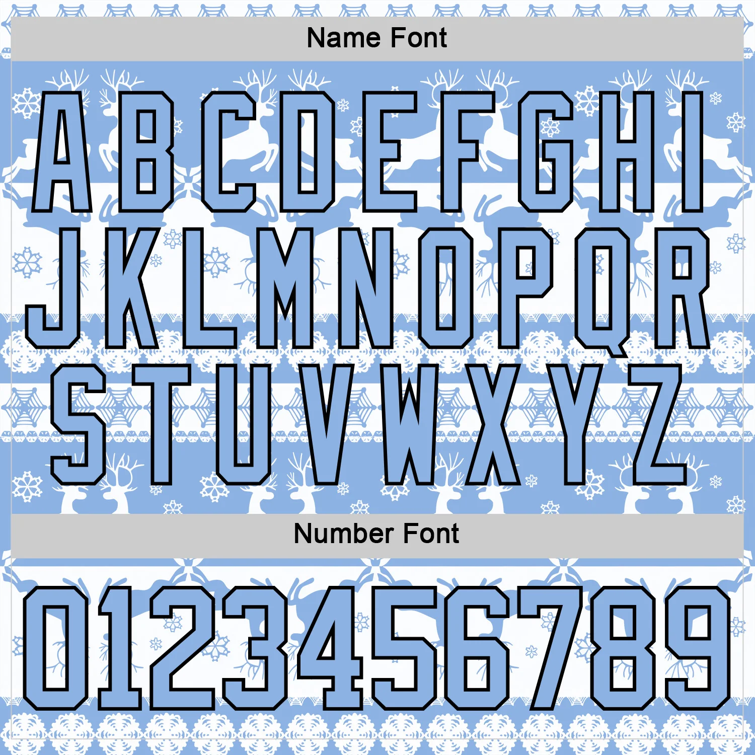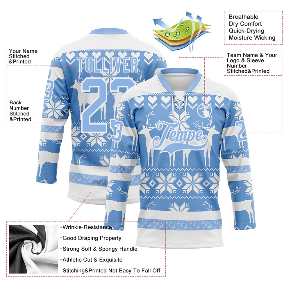 Custom White Light Blue-Black 3D Christmas Ugly Sweater Hockey Lace Neck Jersey