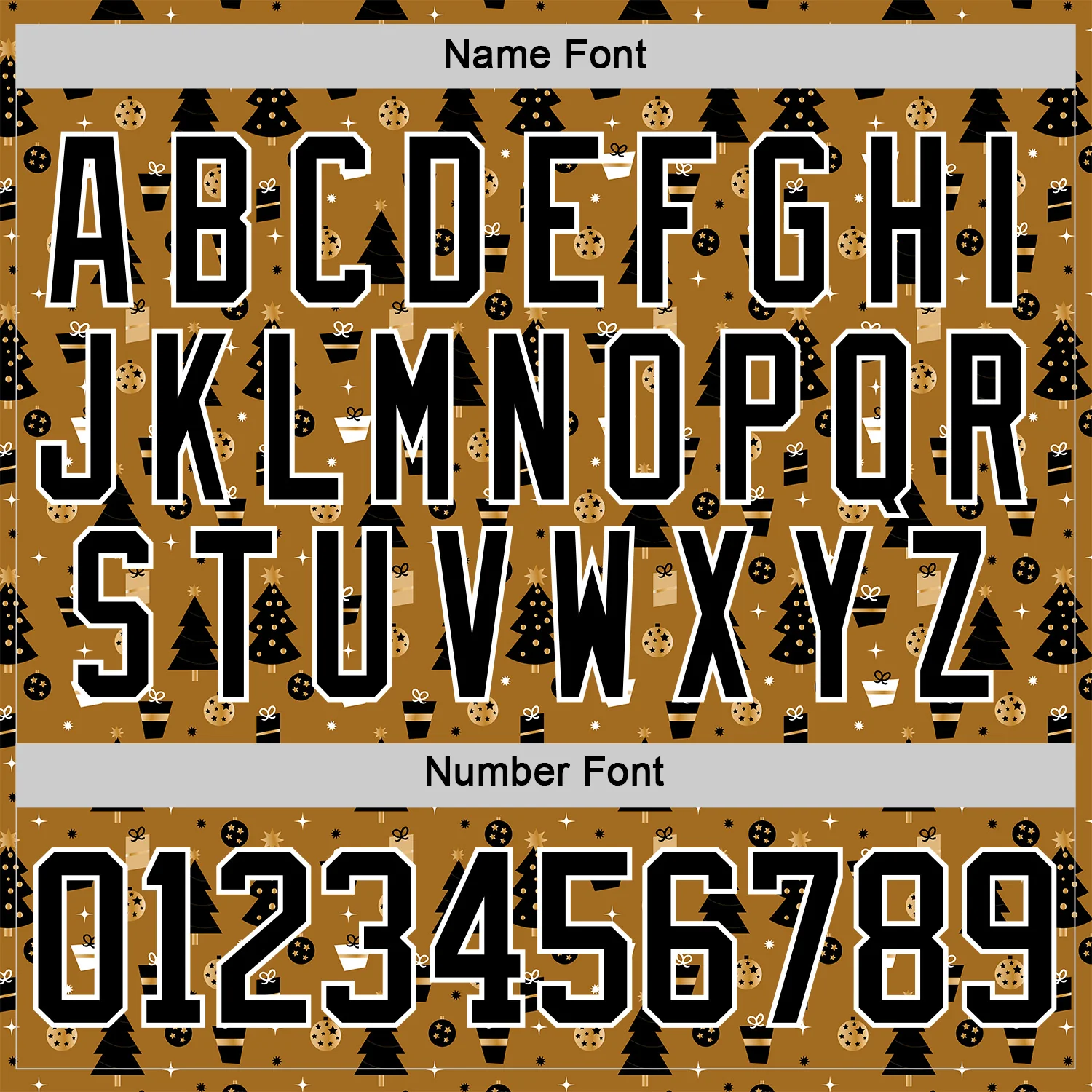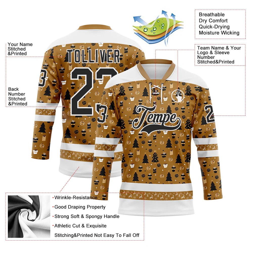 Custom Old Gold Black-White 3D Christmas Hockey Lace Neck Jersey