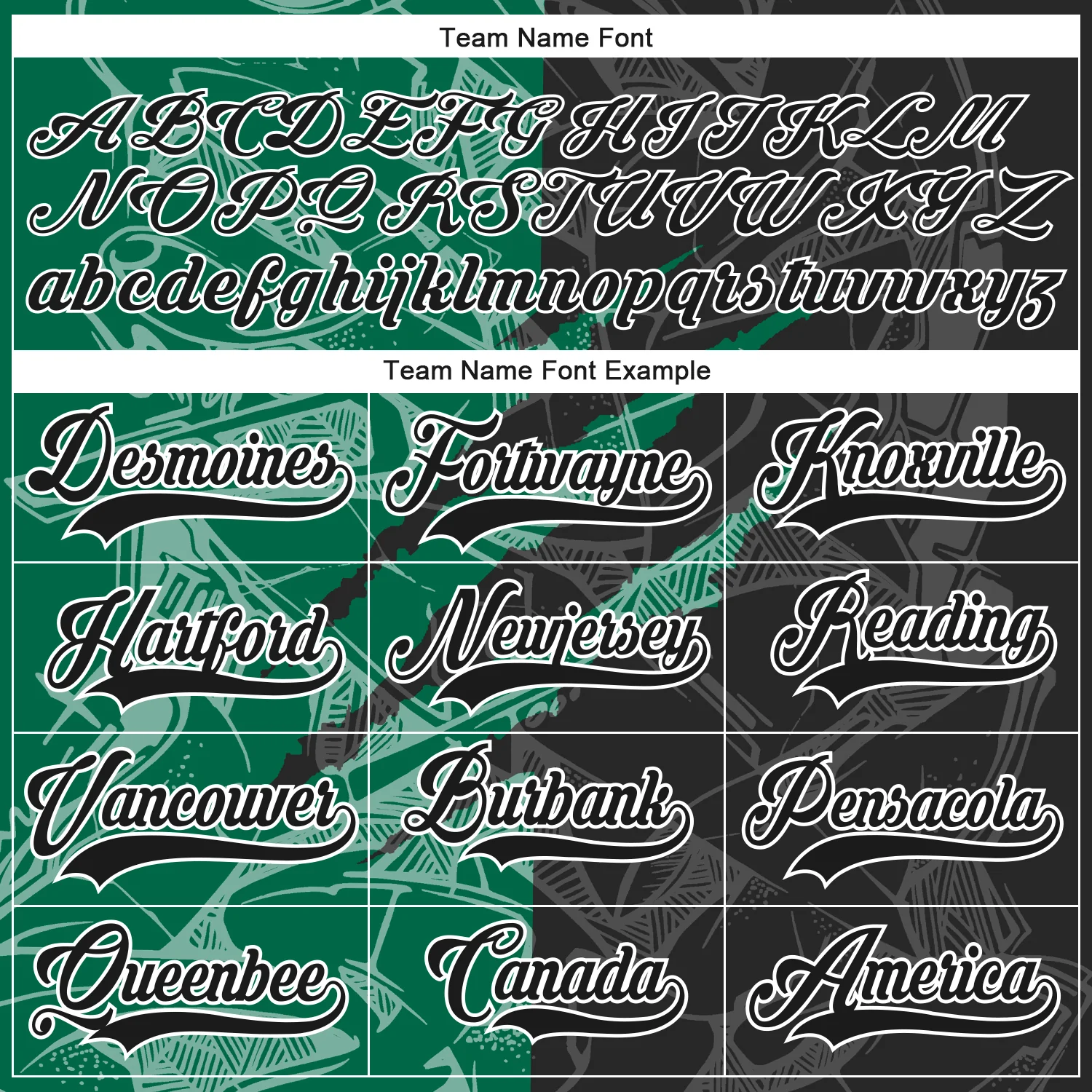 Custom Black Kelly Green-White 3D Pattern Gradient Fashion Scratch Hockey Lace Neck Jersey