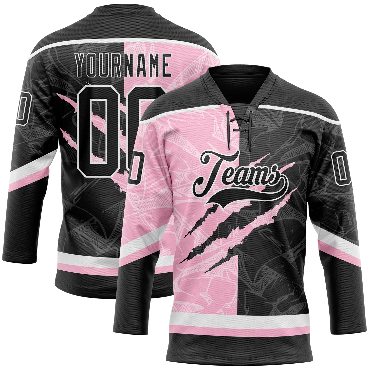 Custom Black Light Pink-White 3D Pattern Gradient Fashion Scratch Hockey Lace Neck Jersey