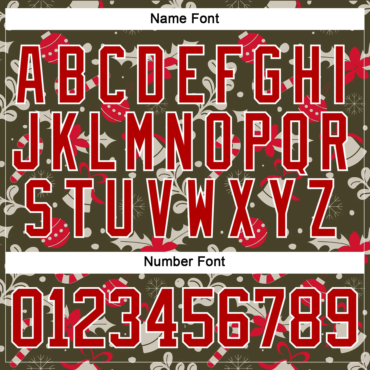 Custom Olive Red-White 3D Christmas Hockey Lace Neck Jersey