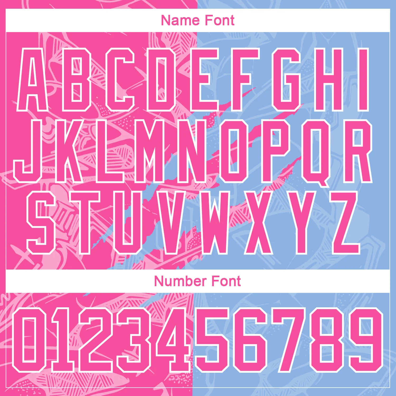 Custom Light Blue Pink-White 3D Pattern Gradient Fashion Scratch Hockey Lace Neck Jersey