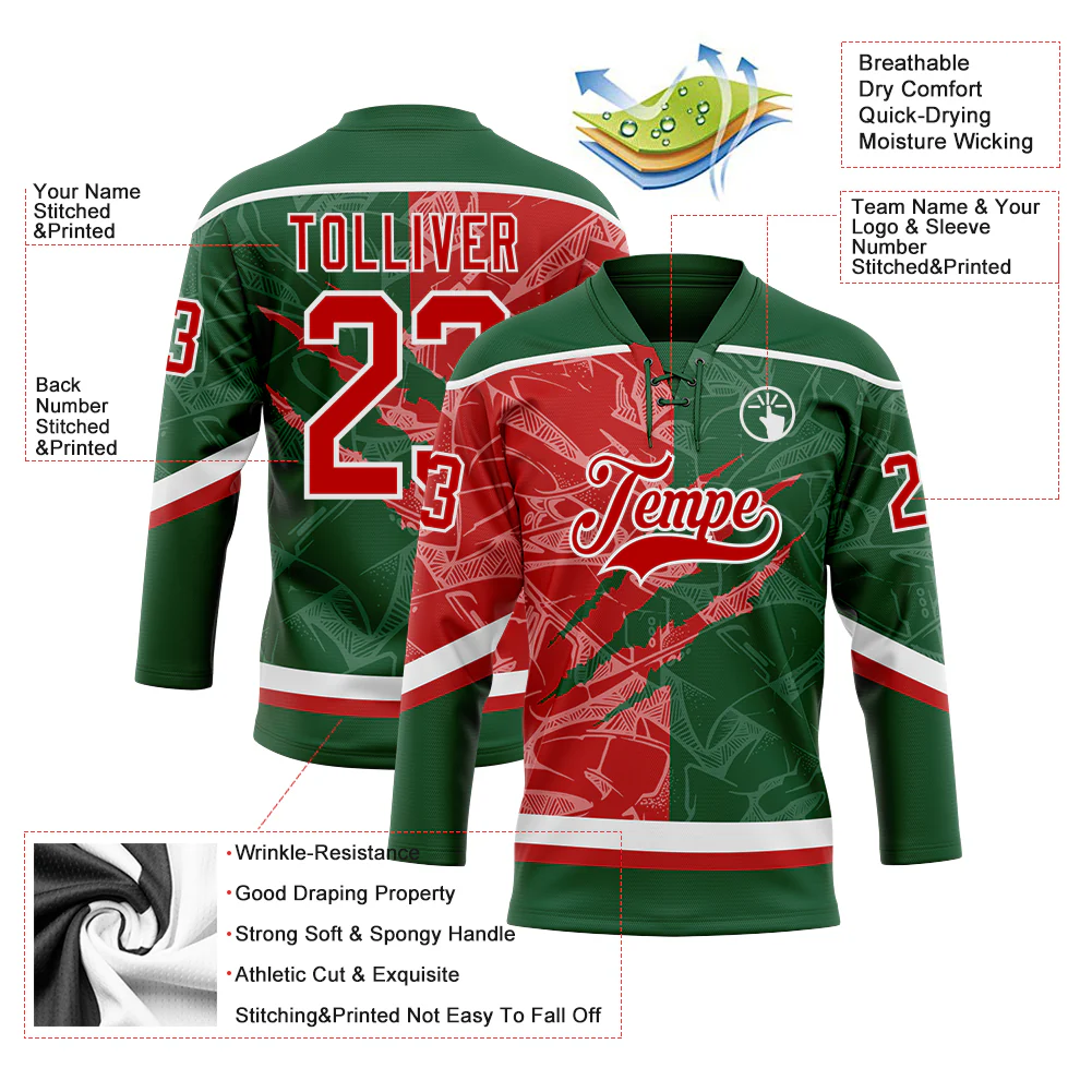 Custom Green Red-White 3D Pattern Gradient Fashion Scratch Hockey Lace Neck Jersey