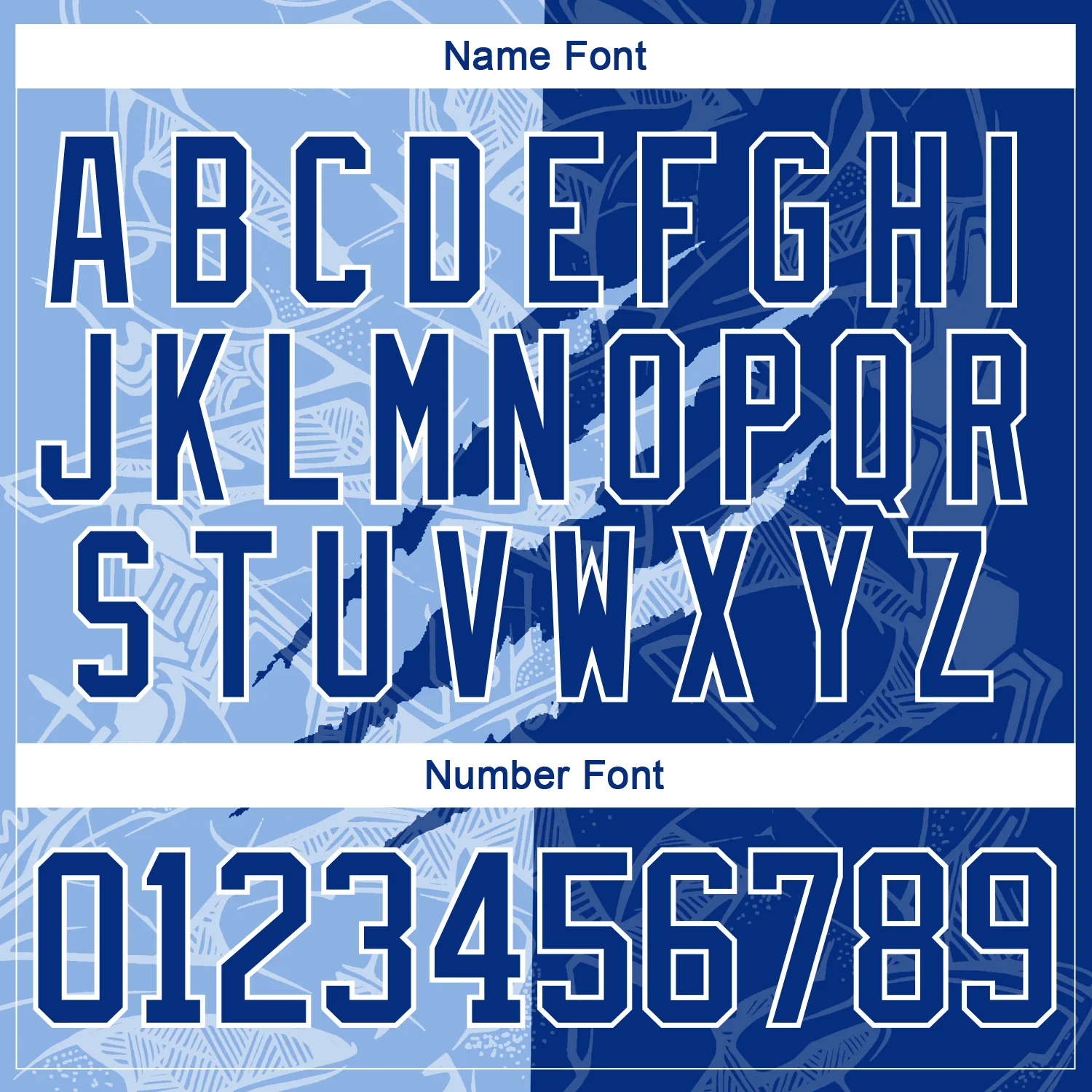 Custom Royal Light Blue-White 3D Pattern Gradient Fashion Scratch Hockey Lace Neck Jersey
