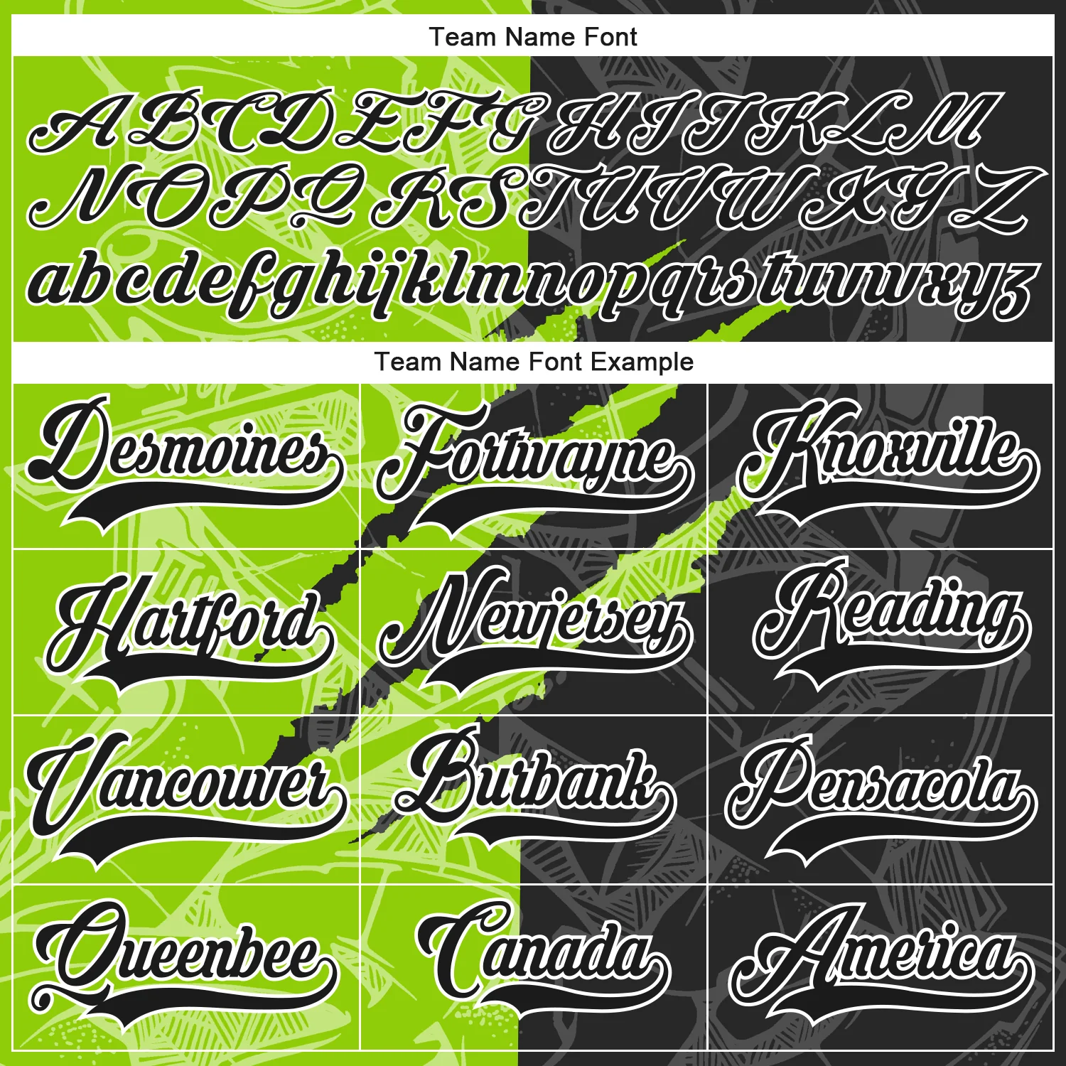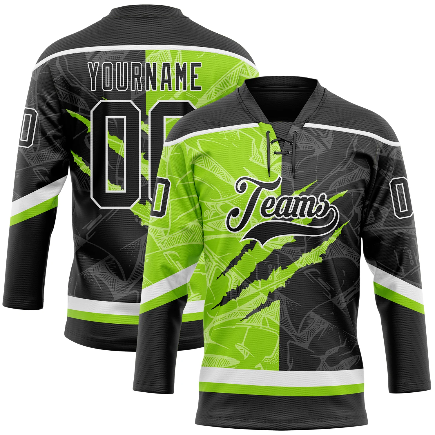 Custom Black Neon Green-White 3D Pattern Gradient Fashion Scratch Hockey Lace Neck Jersey