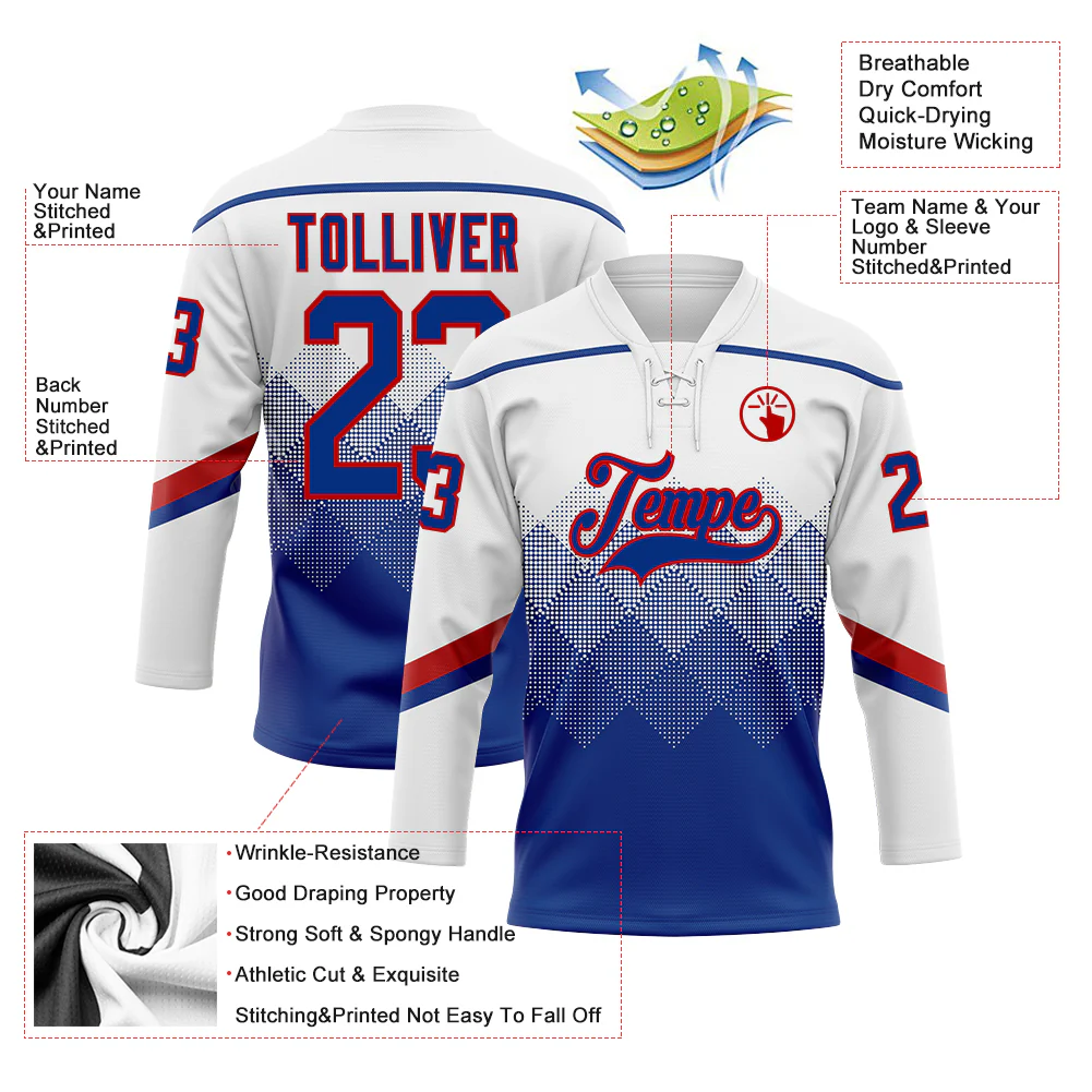 Custom White Royal-Red 3D Pattern Gradient Square Shapes Hockey Lace Neck Jersey