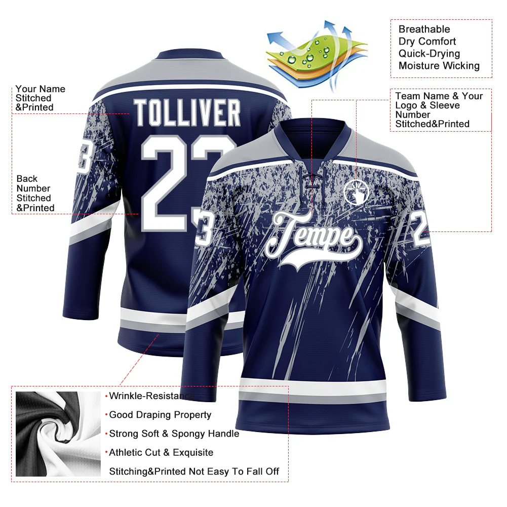 Custom Navy White-Gray 3D Splash Hockey Lace Neck Jersey