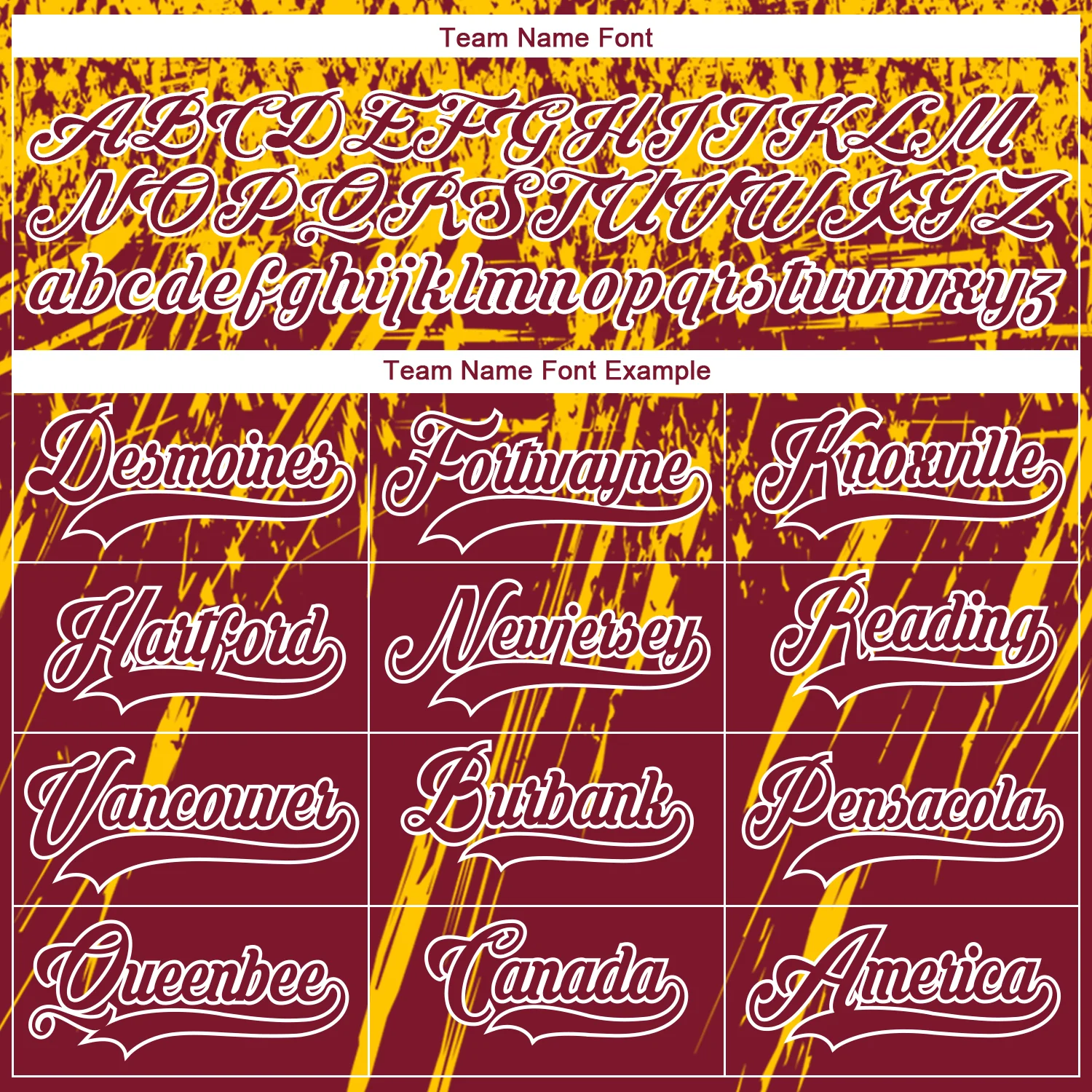 Custom Crimson Yellow-White 3D Splash Hockey Lace Neck Jersey