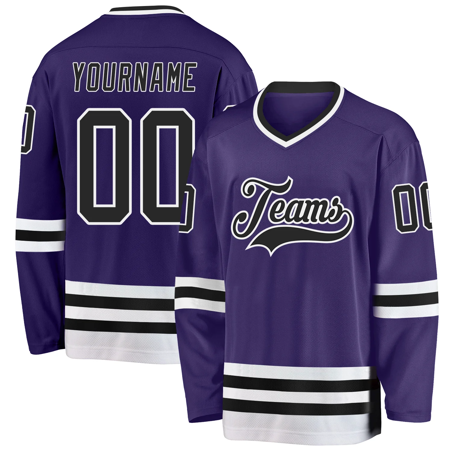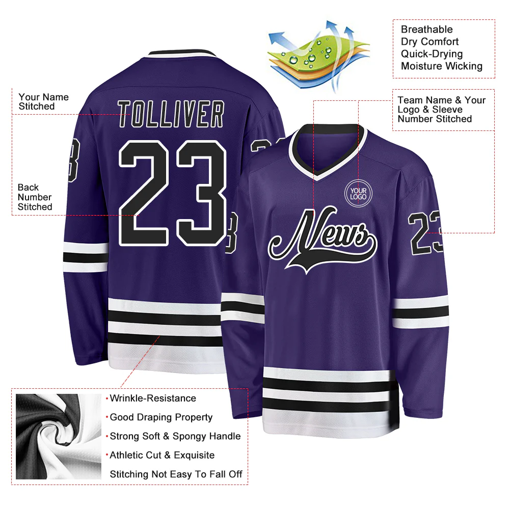 Custom Purple Black-White Hockey Jersey