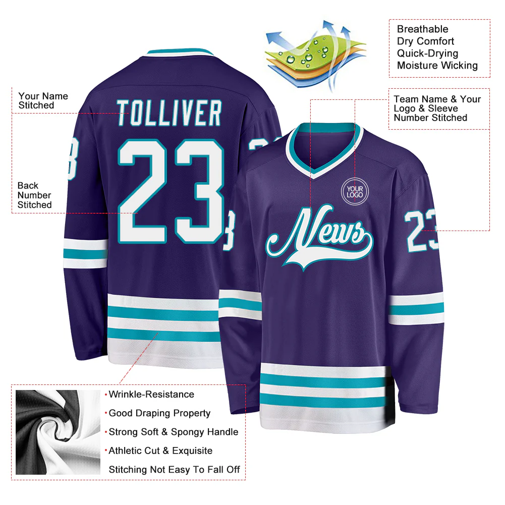 Custom Purple White-Teal Hockey Jersey