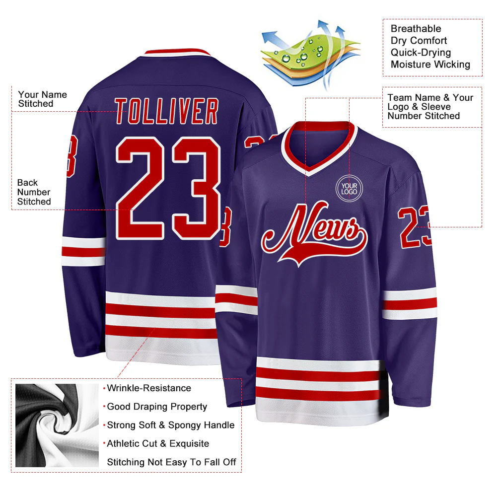 Custom Purple Red-White Hockey Jersey