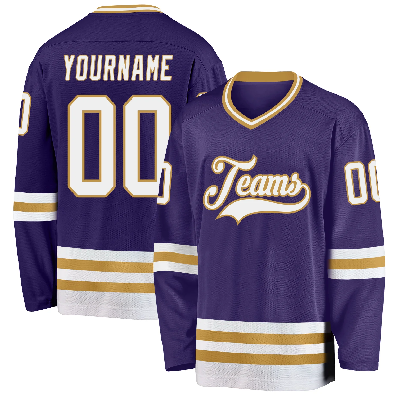 Custom Purple White-Old Gold Hockey Jersey