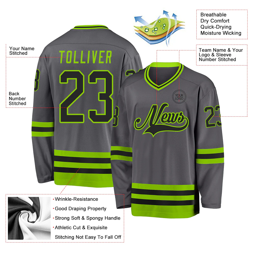 Custom Steel Gray Black-Neon Green Hockey Jersey