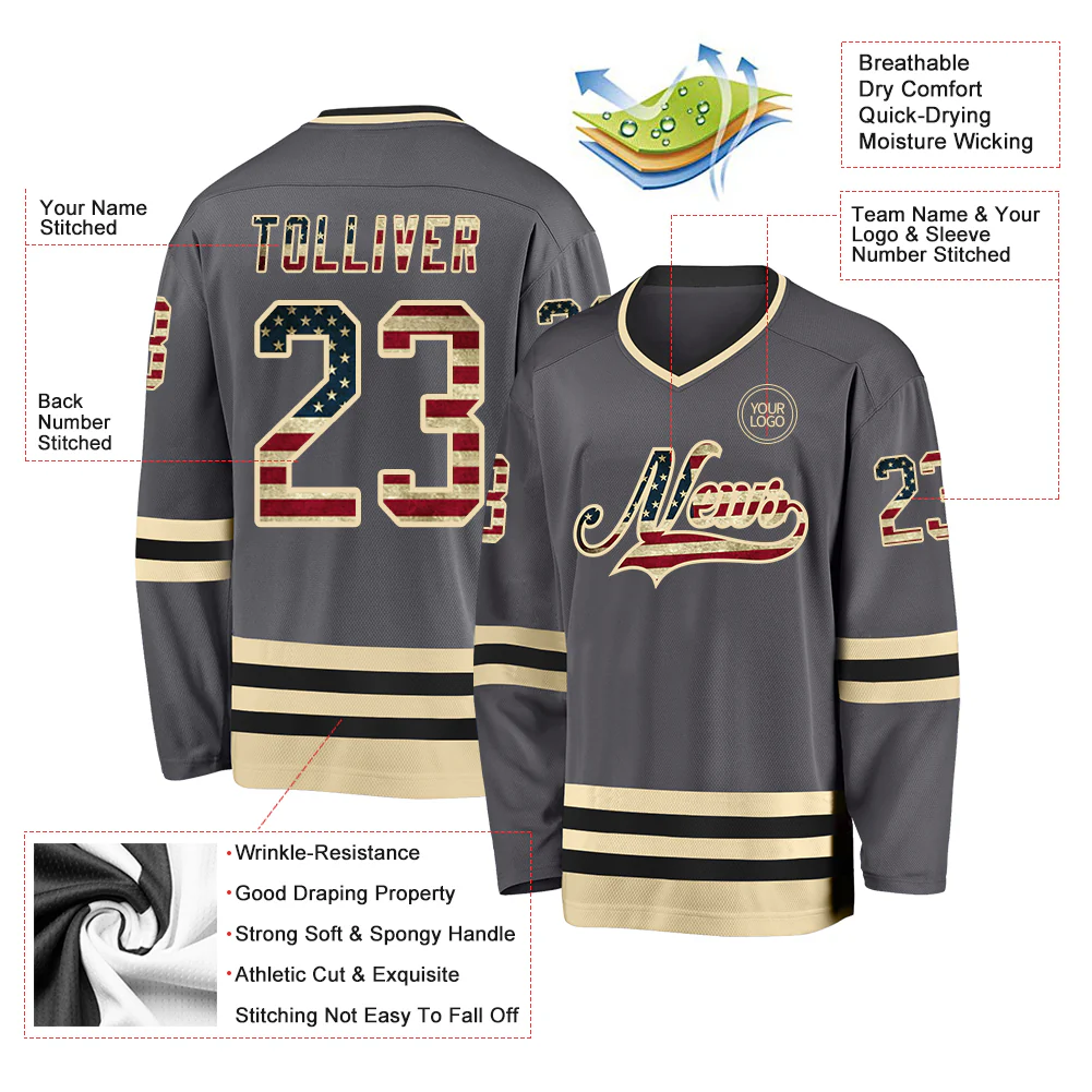 Custom Steel Gray Vintage USA Flag Cream-Black Hockey Jersey