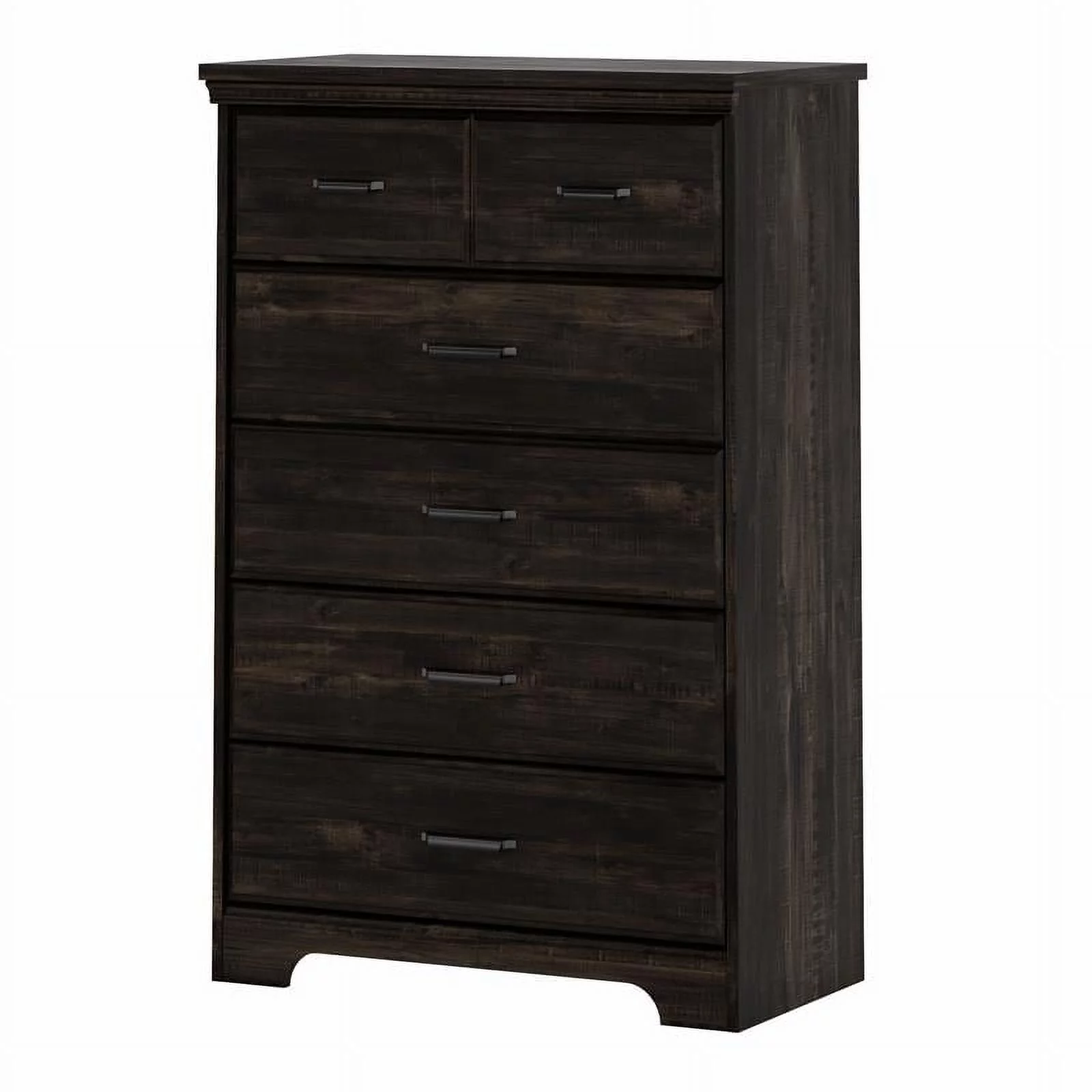Pemberly Row Traditional 5-Drawer Engineered Wood Chest in Rubbed Black
