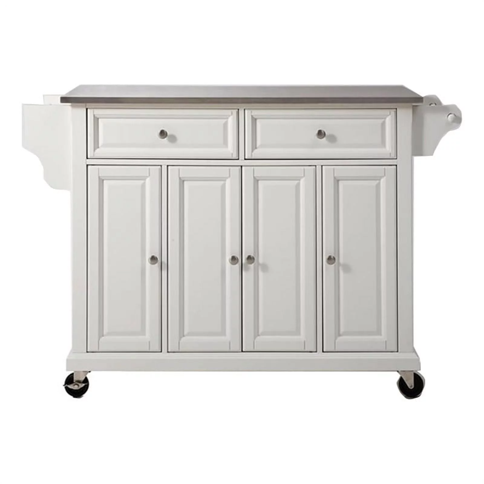 Pemberly Row Traditional Wood/Stainless Steel Top Kitchen Cart in White
