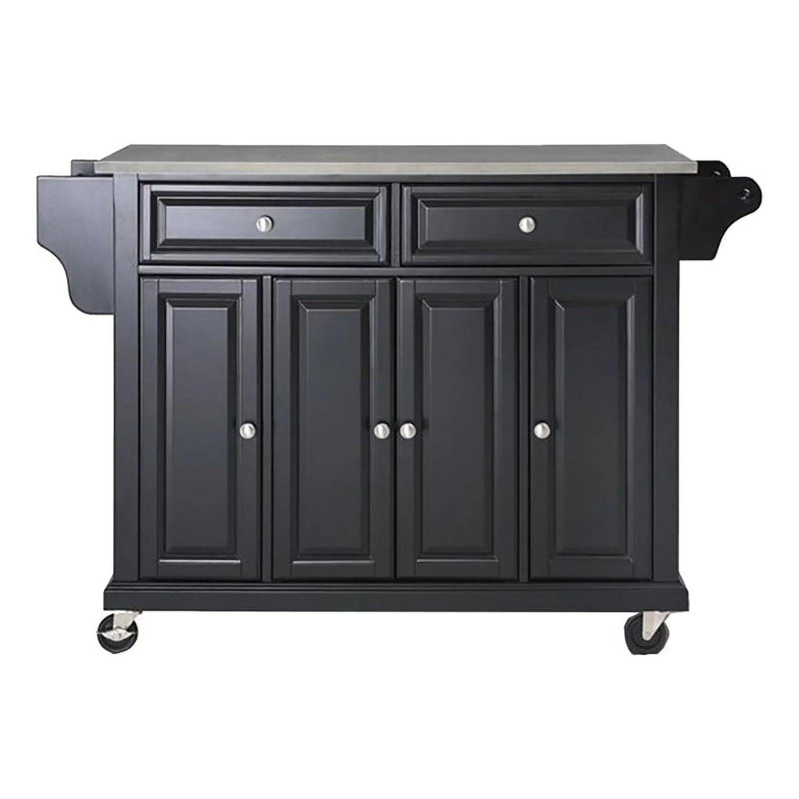 Pemberly Row Traditional Wood/Stainless Steel Top Kitchen Cart in Black