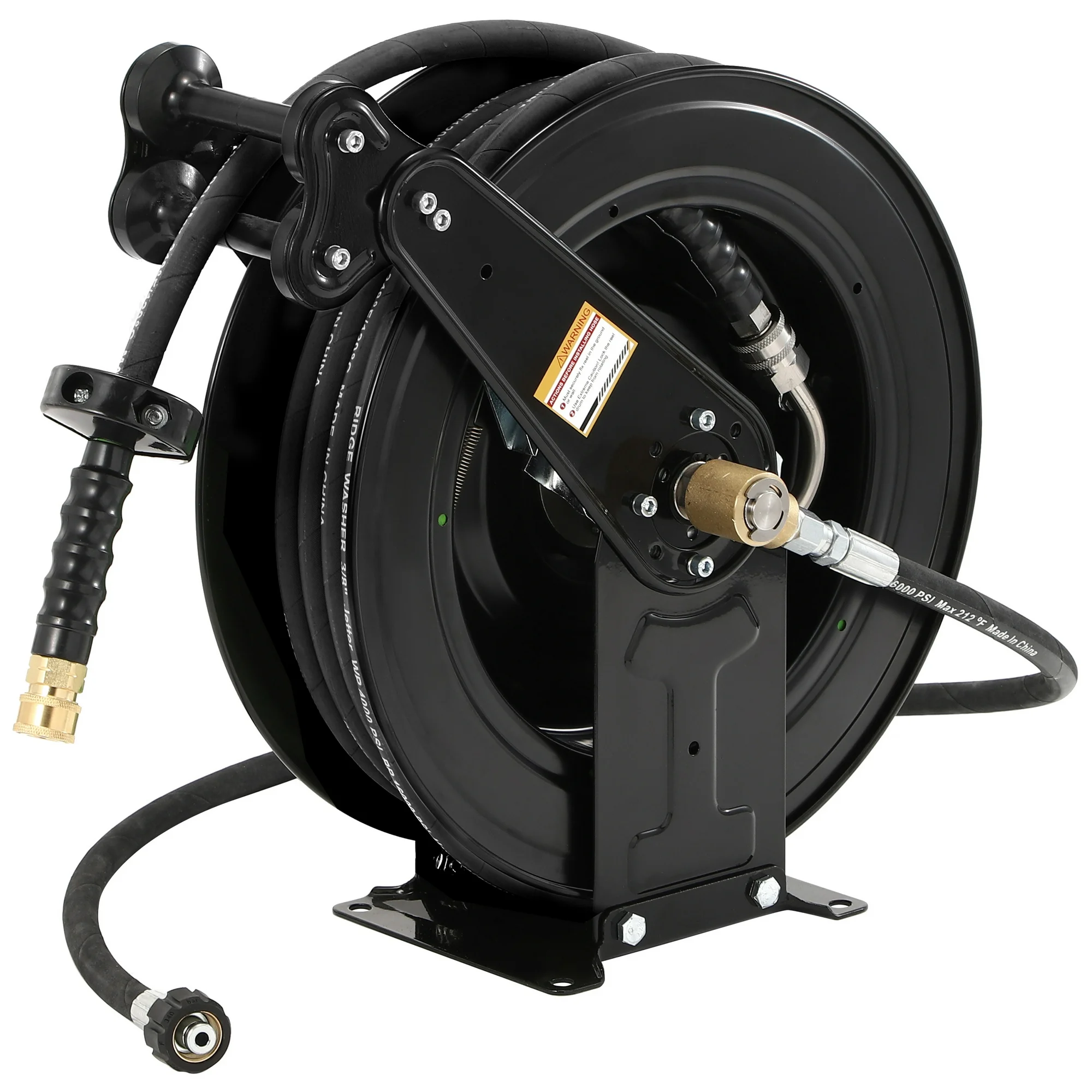 High Pressure Washer Hose Reel for Water/Air/Oil, 3/8" X 50 FT Steel Dual Arm Auto-Retractable Power Wash Hose Reel, Heavy Duty Hose Reel 4000 PSI