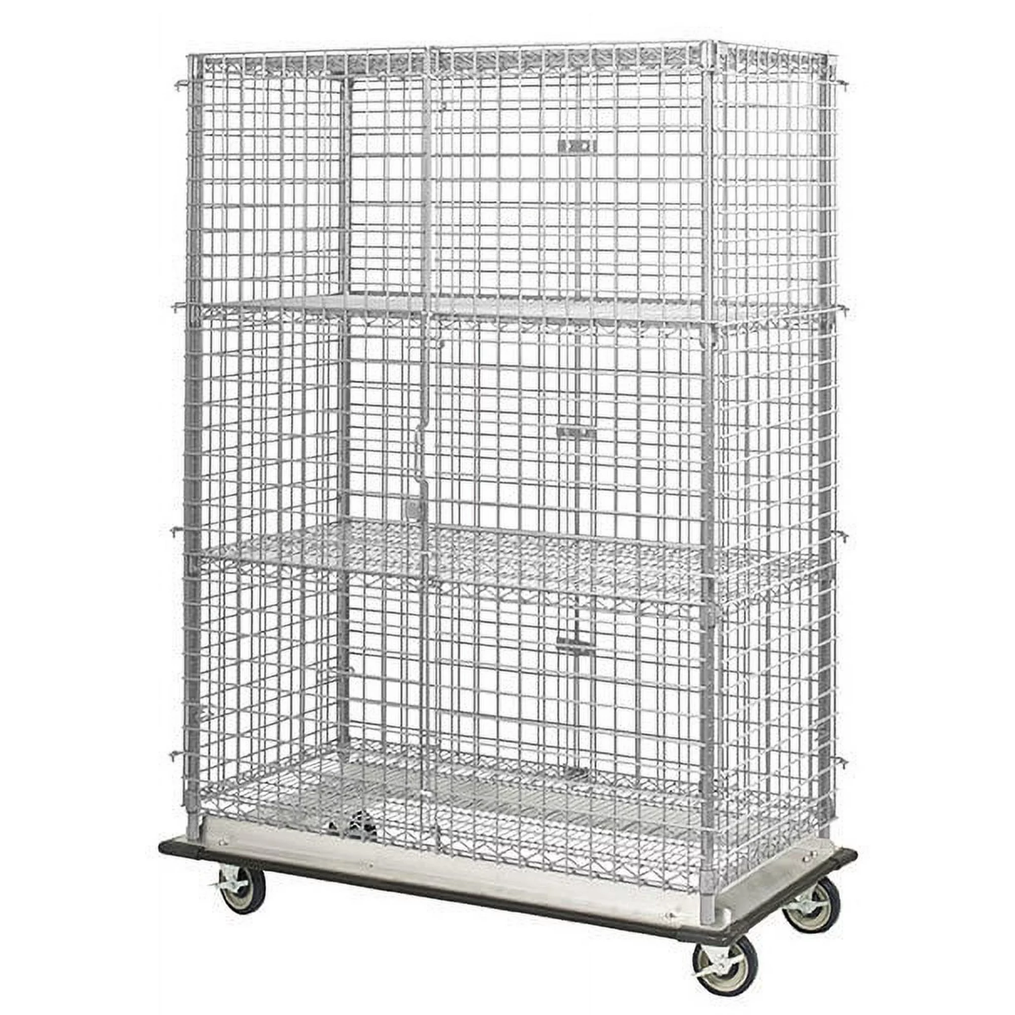 18" Deep x 36" Wide x 69" High Mobile Chrome Dolly Base Security Cage with 3 Interior Shelves