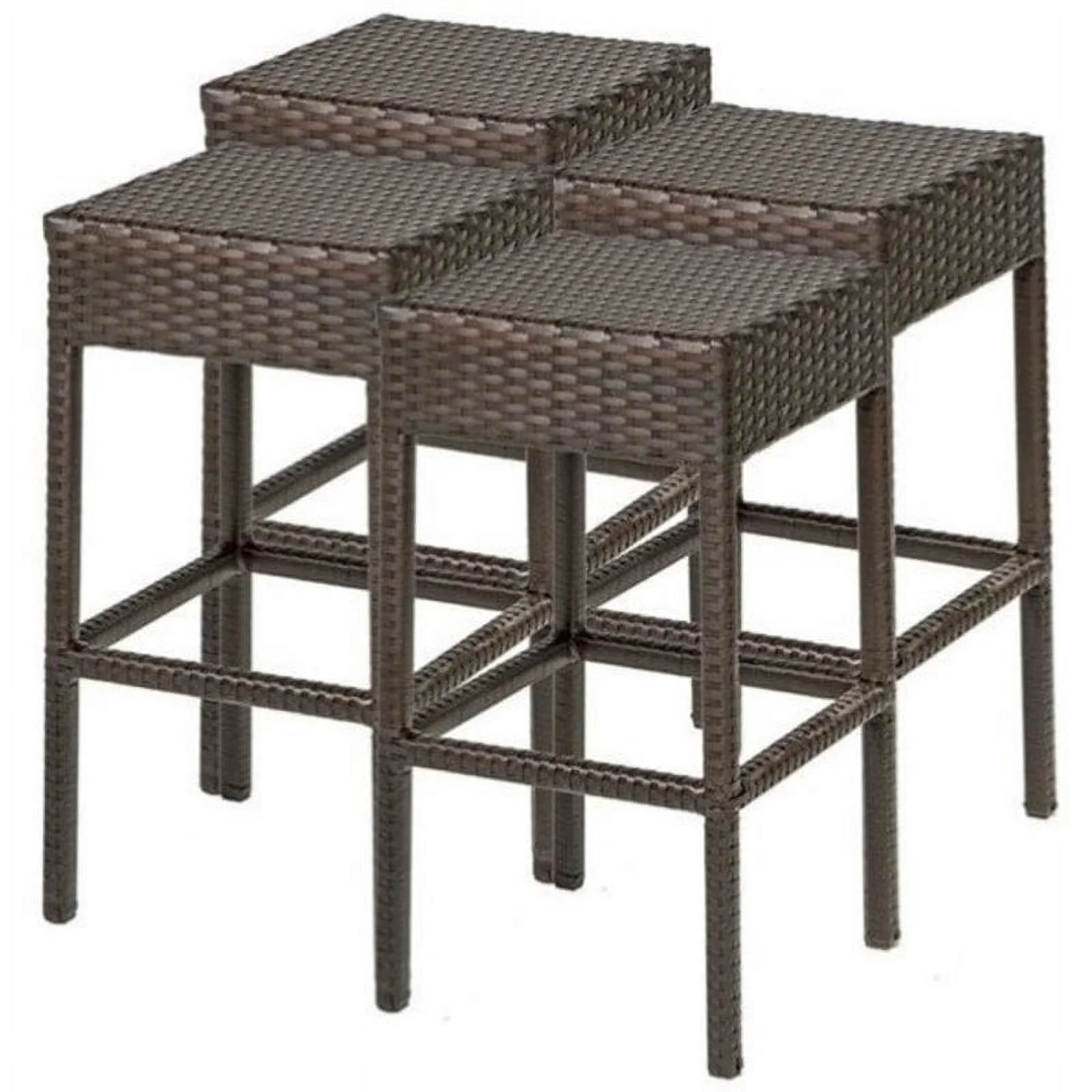 Pemberly Row Wicker / Rattan Bar Stool Chair Set of 4 in Espresso - Square Seat