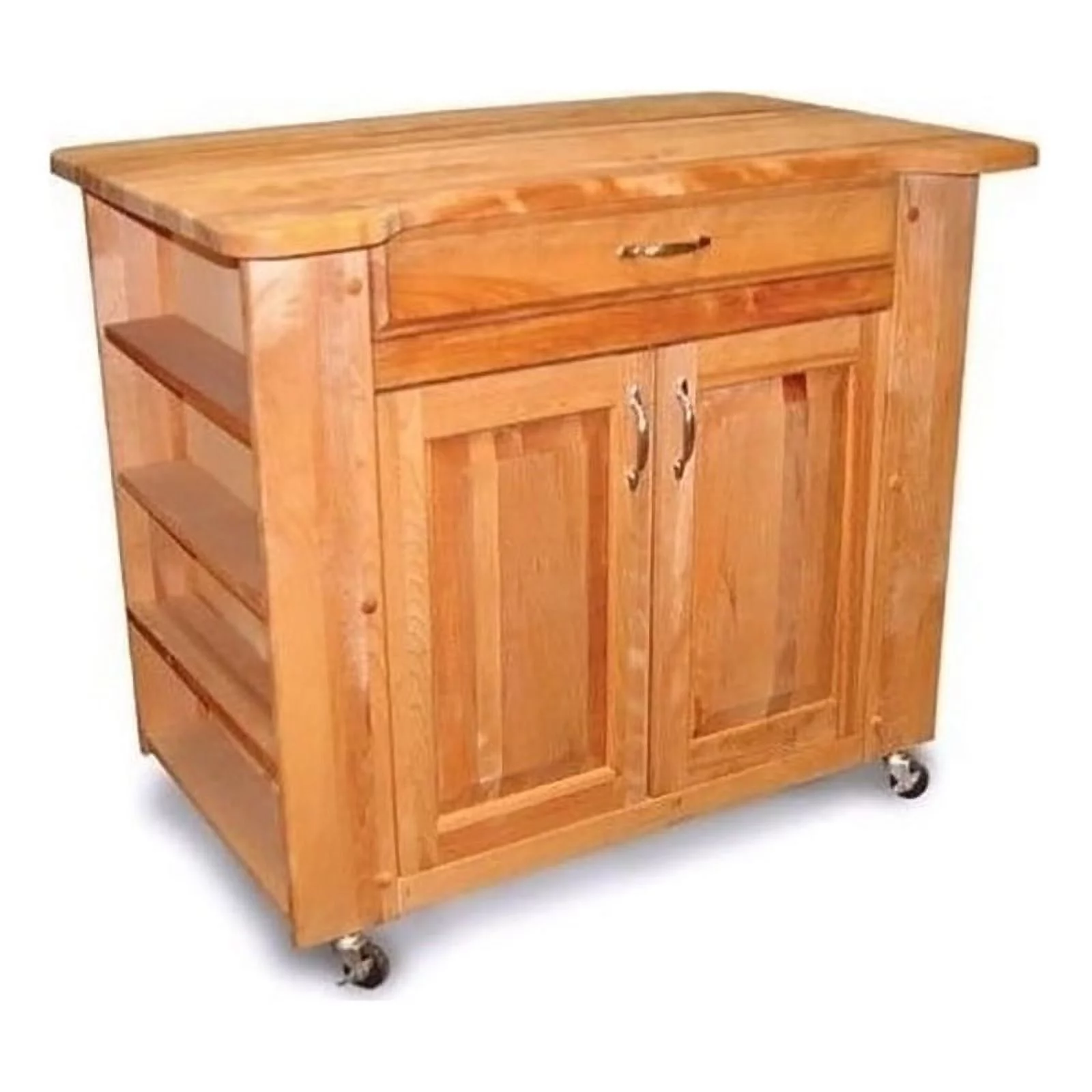 Pemberly Row Wood Deep Storage Large Butcher Block Kitchen Cart in Natural