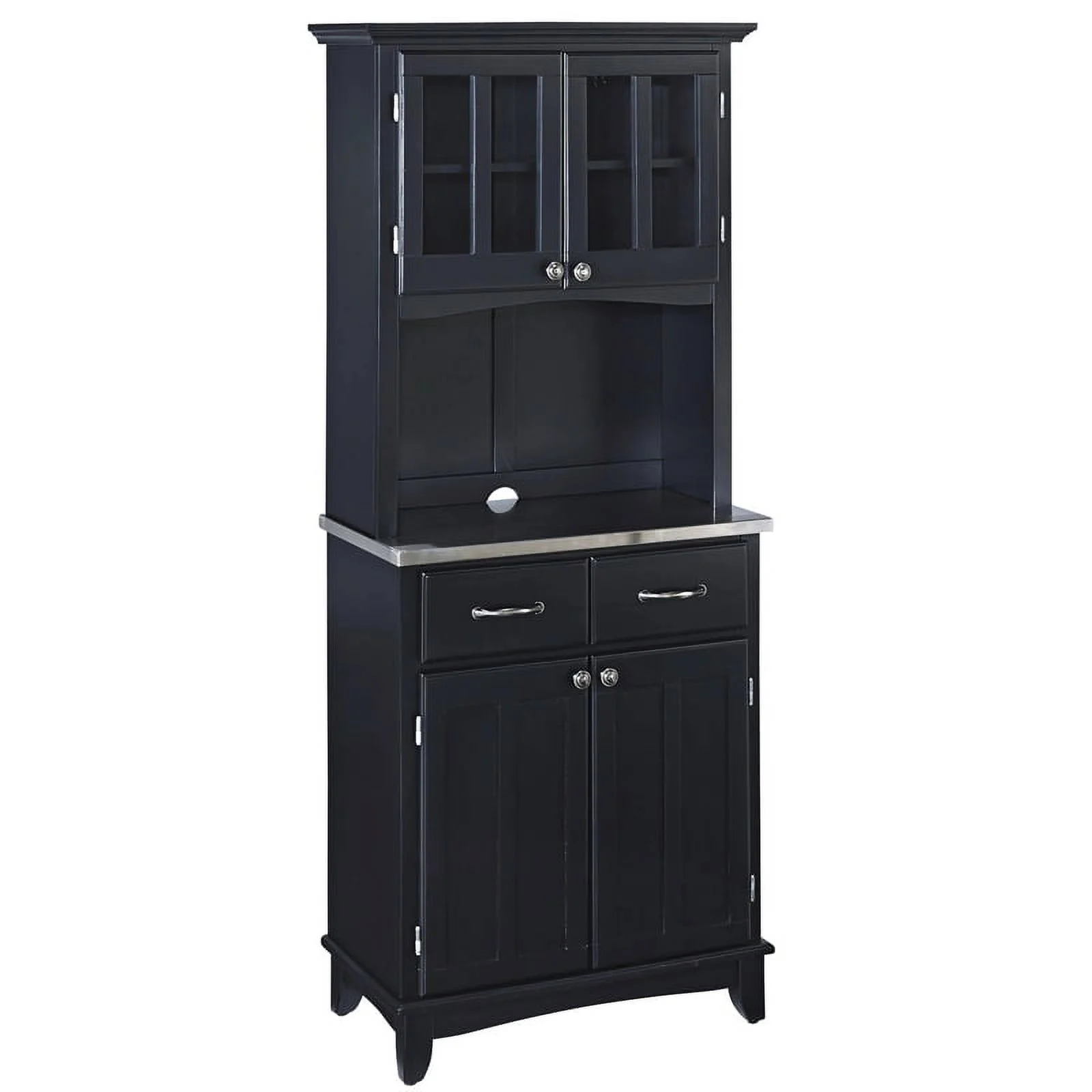 Pemberly Row Wood Buffet with Stainless Steel Top and 2-Door Hutch in Black