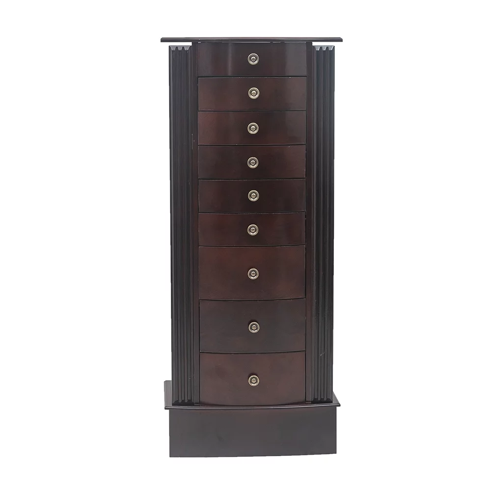 Jewelry Storage Chest Organizer Stand Wood Walnut Necklace Cabinet - Elegant Design, Spacious Compartments, Lockable - Perfect for Jewelry Lovers and Organizing Accessories
