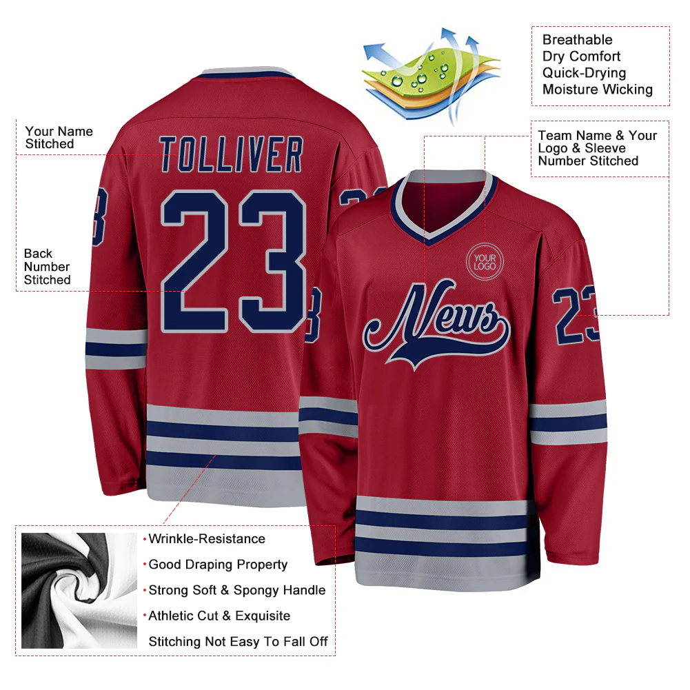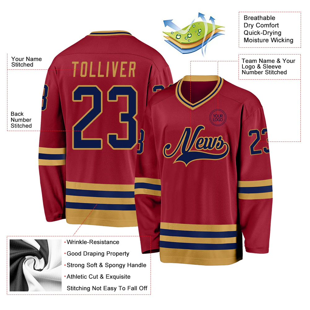 Custom Maroon Navy-Old Gold Hockey Jersey